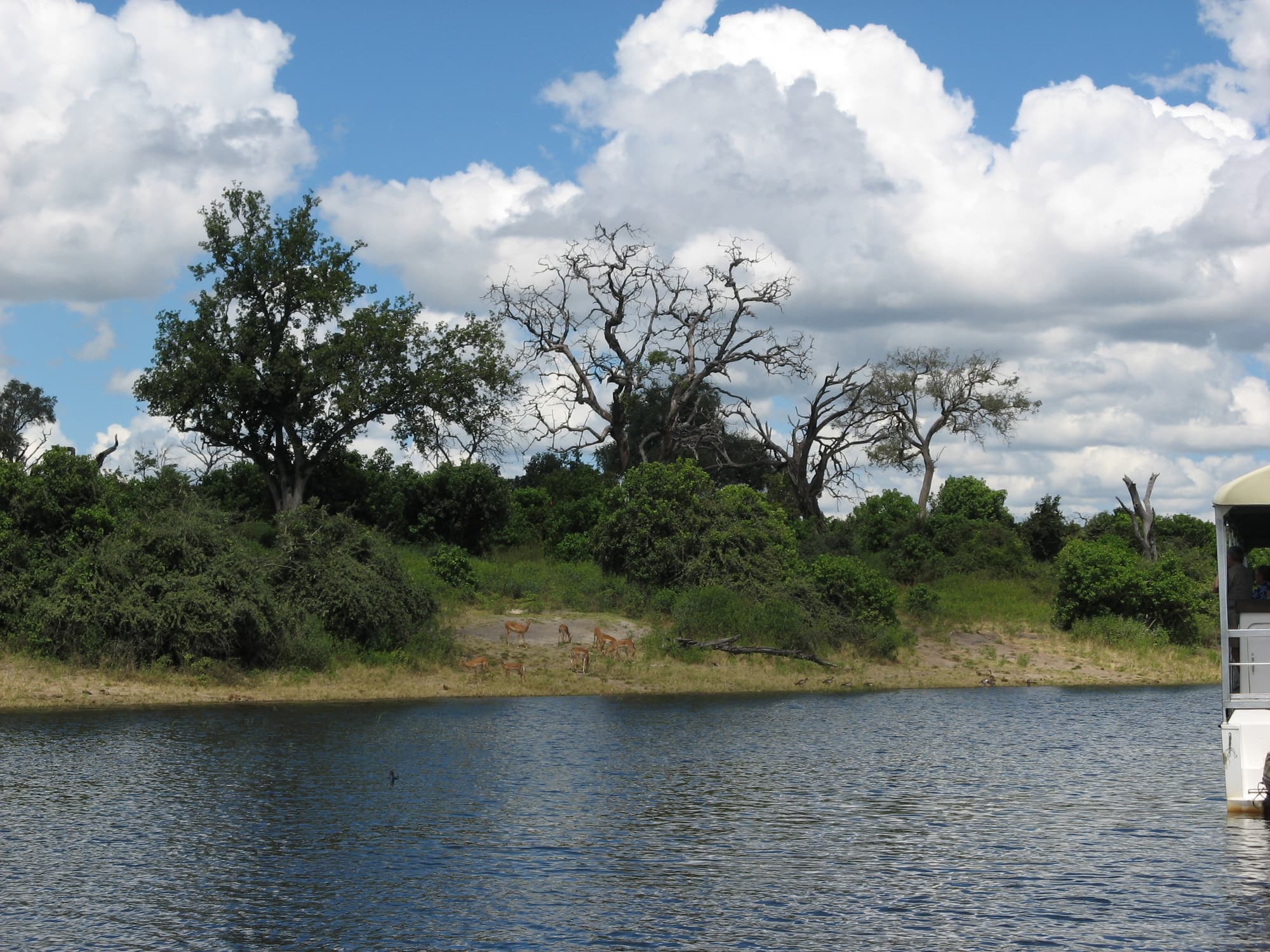 Day 14: Hwange NP to Chobe NP via KasaneLeave Hwange National Park this morning and transfer to Victoria Falls where you’ll be able to grab a quick lunch on your own before crossing the border into Botswana. Arrive at the lodge near Chobe National Park in the afternoon. There will be free time to get settled and relax. Or you could choose to join the included Chobe River Sunset Cruise for a taste of what’s to come on this next leg of your adventure.